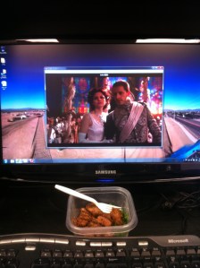 Right now eating lunch and watching Once Upon a Time at my desk.