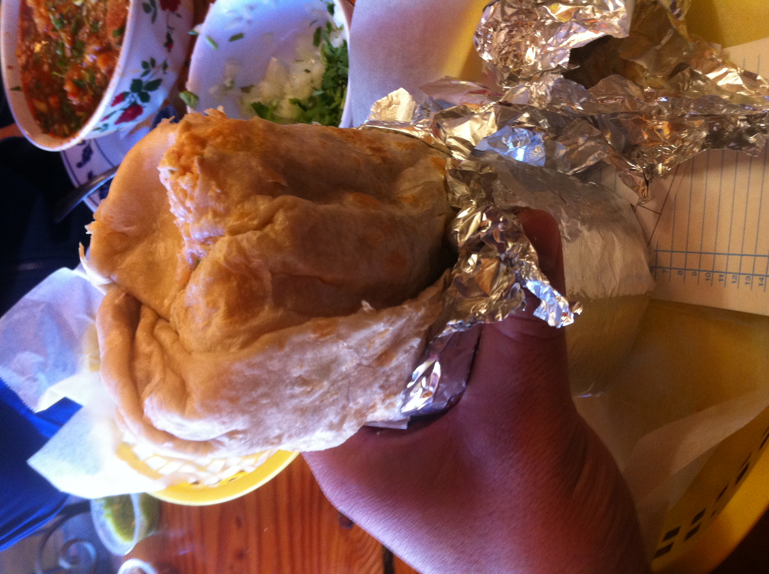 The tortilla and rice and beans were unbelievable. It was crazy to be eating this many carbs all at once. I felt pretty guilty for eating so much on my “free lunch” but I deserved it. I did run into some problems with the last few bites but with the support of my friends Marc, Shelton, and Sisco I DID IT! At this point I was definitely feeling full but it was time for the last stage. I only burped threw up in my mouth once on the way over…