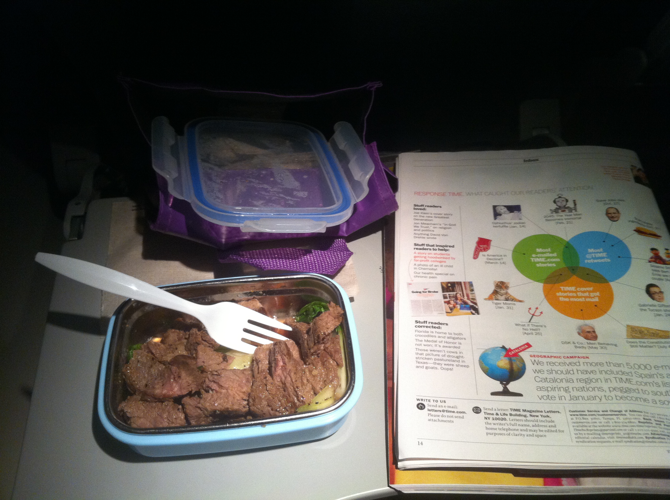 My last meal, which I unknowingly knew at the time, on the plane with my Time magazine out.